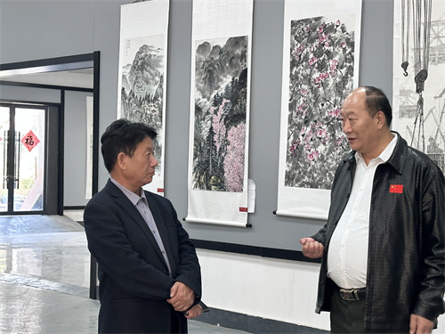 在交流过程中,韩昊轩主席参观了书画市场的各个展厅,对展出的众多优秀书画作品给予了高度评价。他细致欣赏每一幅作品,不时与邱大伟董事长交流心得,分享自己在书画艺术领域的独到见解和丰富经验。双方还就书画市场的现状与发展趋势进行了深入探讨。凭借深厚的艺术造诣和丰富的行业经验,韩昊轩主席对安徽金海书画市场的运营模式、作品收藏及市场推广等方面提出了诸多宝贵建议。邱大伟董事长对这些建议表示高度认同,并期待未来能有更多合作机会,共同推动书画市场的繁荣发展。此次文化交流活动不仅加深了双方的了解与友谊,也为安徽金海书画市场注入了新的活力。